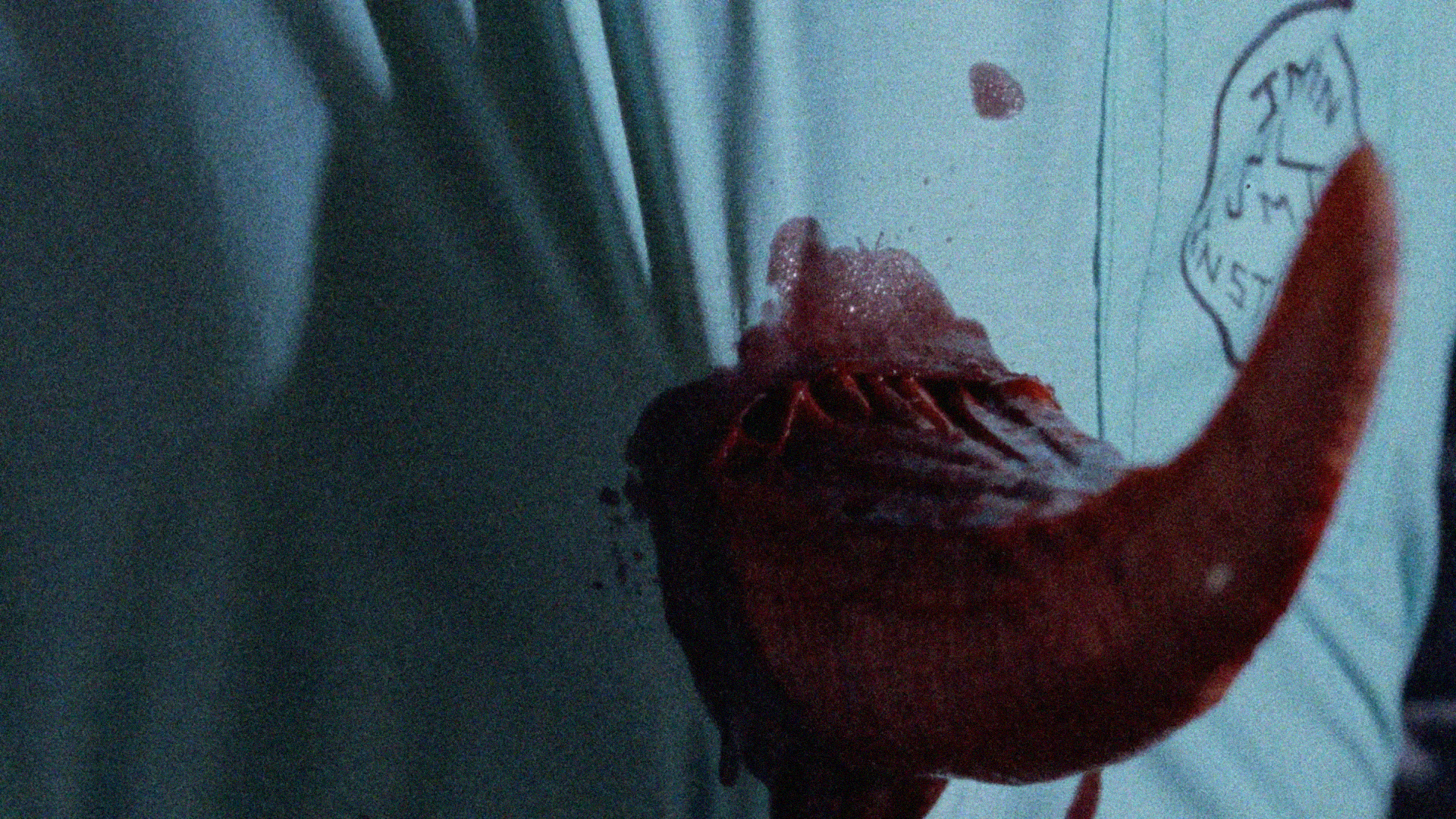 Film bardziej niż horrorem jest zamkniętą w czterech ścianach groteską - lepki klimat miesza się tu z dialogami, które brzmią jak improwizowane kłótnie po trzeciej nad ranem. Zamiast wielkiej grozy dostajemy serię absurdalnych sytuacji, teatralne reakcje i efekty specjalne, które z dumą zdradzają swoje niskobudżetowe pochodzenie. To właśnie ta surowość - gumowa, klaustrofobiczna i momentami zaskakująco zabawna - buduje urok filmu, który ogląda się trochę dla fabuły, a trochę dla samego doświadczenia „co oni tu właściwie zrobili?”.