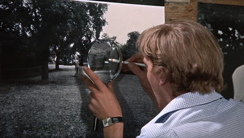 Akcja toczy się "swingującym Londynie" lat 60., w środowisku artystycznej bohemy. Bohaterem jest wzięty fotograf mody imieniem Thomas (David Hemmings); otaczają go asystenci, modelki, dziewczyny szukające szczęścia, znudzone gwiazdy rocka, barwni, młodzi ludzie z towarzystwa. Thomas pracuje jak maszyna i równie intensywnie używa życia - jest młody, przystojny, bogaty, a jednocześnie cyniczny, beznamiętny i wewnętrznie wypalony. Pewnego dnia fotograf wałęsa się po parku robiąc przypadkowe zdjęcia. Dostrzega w oddali mężczyznę i kobietę. Para zachowuje się dziwnie; być może kłóci się, albo ze sobą flirtuje. Thomas robi im serię zdjęć. Zostaje zauważony przez kobietę (Vanessa Redgrave), która natarczywie domaga się, aby fotograf oddał jej film. Bohater oczywiście odmawia; po powrocie do pracowni wywołuje kliszę i robi odbitki. Dostrzega na nich szczegóły, które pozwalają podejrzewać, że w parku doszło do morderstwa, którego dowody zostały utrwalone na zdjęciach. Kolejne, coraz większe powiększenia utwierdzają Thomasa w domysłach, ale bohater wciąż nie jest pewien, co rzeczywiście zobaczył i sfotografował. Fotograf wraca na miejsce domniemanej zbrodni, zaciekle pracuje nad wydobyciem szczegółów z kliszy; odkrycie prawdy staje się jego obsesją - ale prawda cały czas mu się wymyka.